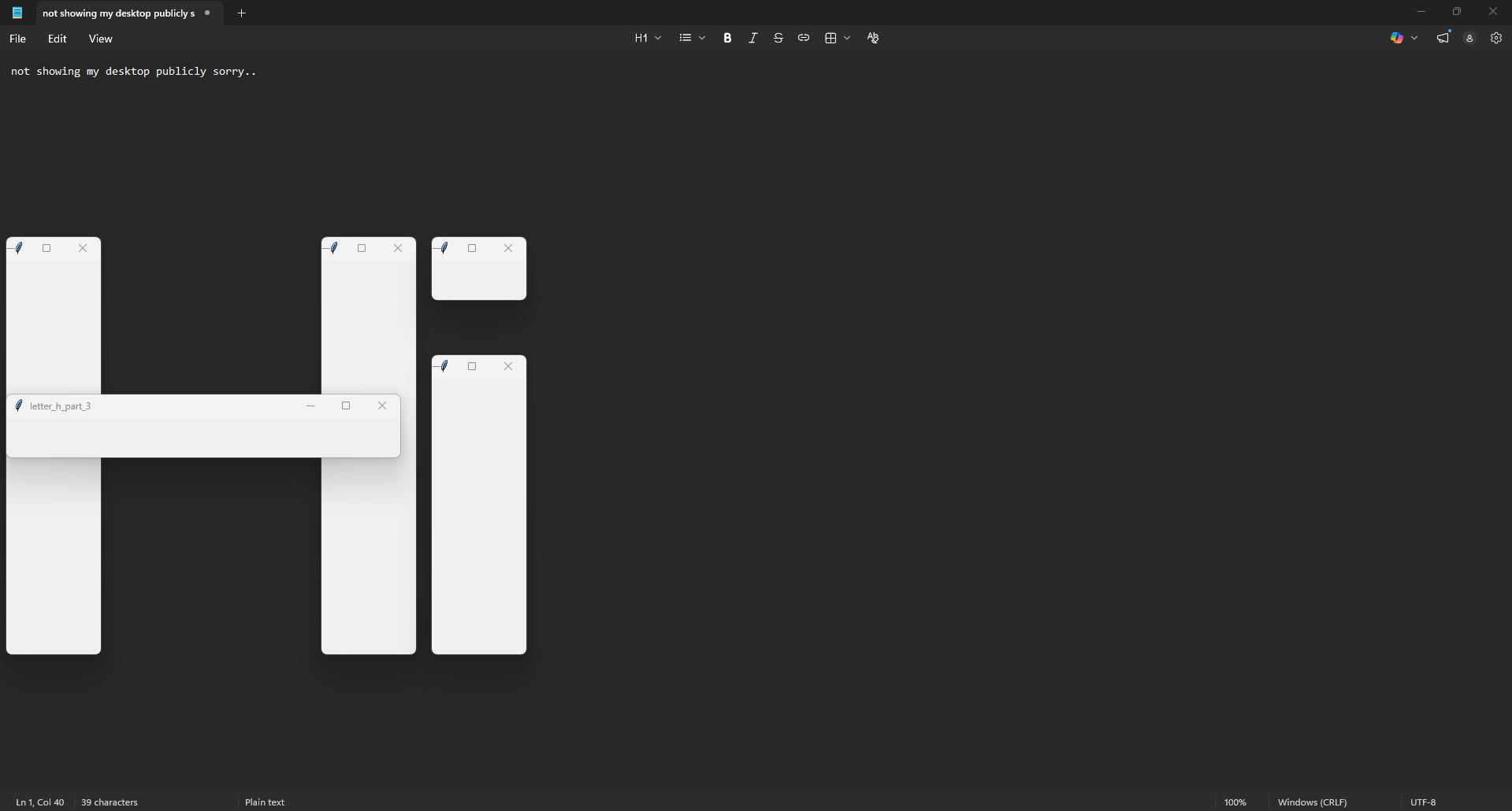 dont know why i keep making these at eather 9pm or am kindoff wierd anyhow i started working on a project to display letters on teh screen using windows !! kindoff unfinished but i have some sneak peeks!
